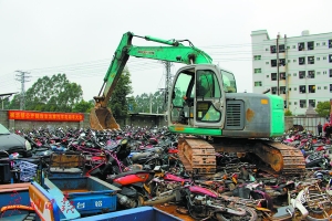 横沥公开销毁590辆非法两轮摩托车、电动车和三轮车