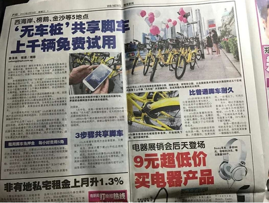 但很快,摩拜单车的宣传就被媒体和行业人士“打脸”。行业人士透露,摩拜并非首个进军海外市场的中国共享单车企业,ofo才是——早在2016年底,ofo就已经进入了新加坡。据ofo 联合创始人于信介绍,目前ofo已在新加坡投放单车数千辆,吸引用户数万,平均每1辆单车可吸引至少14个用户。并且,今年2月,ofo还在新加坡发起了为期两周的免费使用活动,引发了广大市民争相试用。