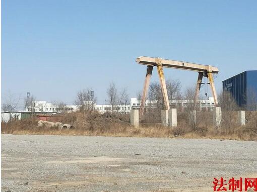 盛运公司大院内除了无审批手续的龙门吊、违法建设的水泥桩基、300平方米简易房,暂时还没有厂房,也无铆焊加工车间。