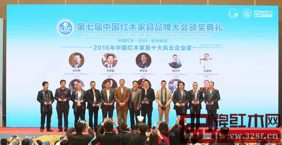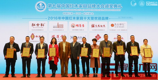 波记家具(右六)凭借在红木家具行业卓越的品牌表现,荣膺“2016年中国红木家具十大受欢迎品牌”