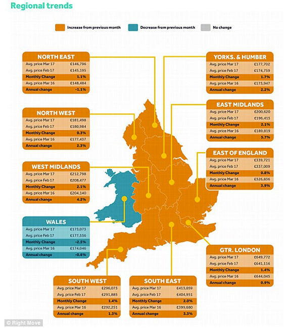 有资料显示,3月份,英国平均房价增长1.3%,但中东部和中西部房价增长了2.1%。