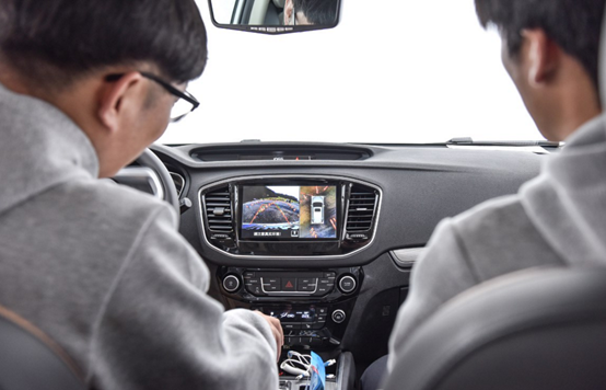 所谓盲测,就是把远景SUV左右车窗、前后风挡玻璃都用车衣蒙住,车内试驾人员要在完全无法看到车外情况的状态下,通过远景SUV搭载的360°全景影像系统完成开车出库、再倒车入库的规定动作。当9寸高清液晶触摸大屏显示出360°全景影像系统时,远景SUV车头、车尾以及两侧后视镜安装的四个超广角镜头,将车身四周的情况给予了多角度、多画面的清晰呈现。盲测结果还是很满意的,远景SUV停靠位置不偏不倚,甚至比平时入位更准。
