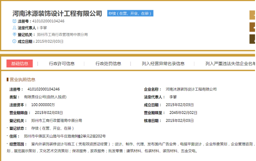 但是手欠的群众通过查询第三方数据,竟然发现,河南沐源装饰工程设计公司2015年2月才注册成立,成立时间仅仅两年。据了解河南的大型会展招标都会要求竞标的企业必须提供三年财务审计报告,莫非今年条件放宽了?