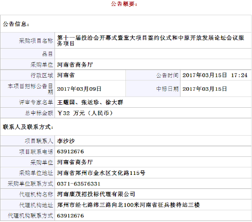 河南省投资贸易洽谈会每年都要举办,2017河南省投洽会的中标公司背景深厚,疑信息造假,吃瓜群众却觉得今年情况有点不一样。好事的吃瓜群众从网上看到的信息表明,第十一届中国(河南)国际投资贸易洽谈会开幕式招标活动中,河南沐源装饰工程设计有限公司为中标单位。