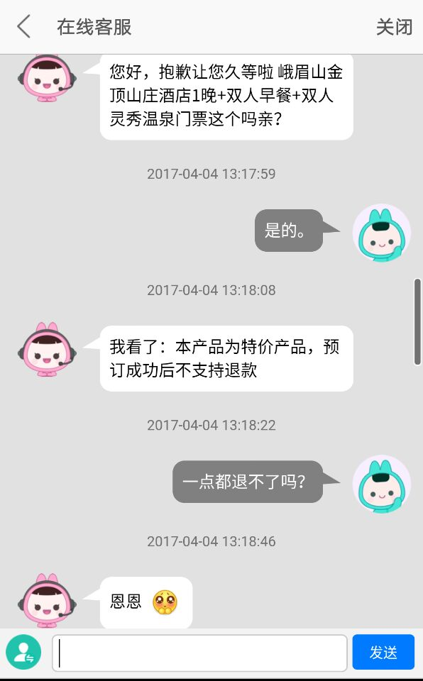 尽管没能取消订单,但李先生一家还是于4月3日游览了峨眉山金顶。“当天上去,耍了一会儿就下来了,晚上就连夜回成都了。”李先生说,虽然峨眉山风景很美,但已没有心情欣赏了。