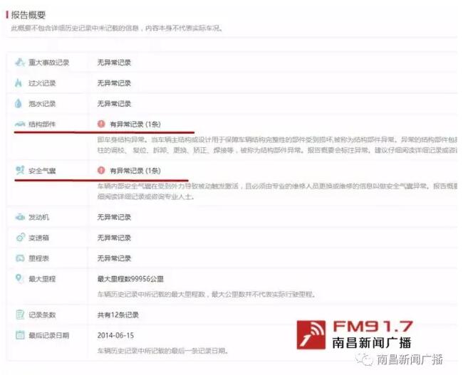 解先生告诉记者,这辆从优信二手车南昌平台购买的车,有多部件故障记录不说,其实早在2014年6月,公里数就高达9万9千多公里。
