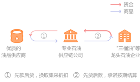 以某省属国企石油公司合作为例,该国企在国内号称“第四桶油”,全国500强企业排前80,公司资本金100亿,单笔油品采购几千万到上亿不等。该国企与石油供应链服务公司合作,由供应链服务公司为其提供30天的交易资金垫款,使得国企可提前与上游炼油厂等采购油品,30天到期后向石油供应链公司还本付息,该国企获得了资金使用上的方便,而石油供应链公司赚取合理收益。加油宝通过技术手段和平台化服务,为用户投资项目提供了便捷、合规、可靠的桥梁,从而让用户可以享受国家石油产业升级的红利。