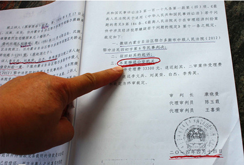 记者:是鄂尔多斯中院支持了你的诉请?