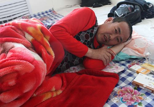 看见记者进门,一位卧床的中年男子勉强点了点头。