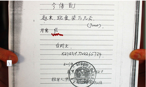 “我们借的是高利贷,当然要偿还约定的高利息,但赵其太贪心了!”袁三说:“从我们借贷开始,赵其就开始设圈套了:他利用自己的笔记本纸来打借据,只让借款人签字,不让按手印;我们偿还本息时,他坚持不让通过银行账户汇款;他收取现金后,不给出具任何收条;他将借据返还给我们时,往往要求我们当场撕毁借条。我们也没多想,看见他把还款数目写在日记本上就放心地走了。但从2010年起,因为经济形势不好,大家的还款情况不如从前,赵其就开始成批地向法院提起了诉讼,而且他的诉求吓死人,当时有些人连吓带气差点吐血。”