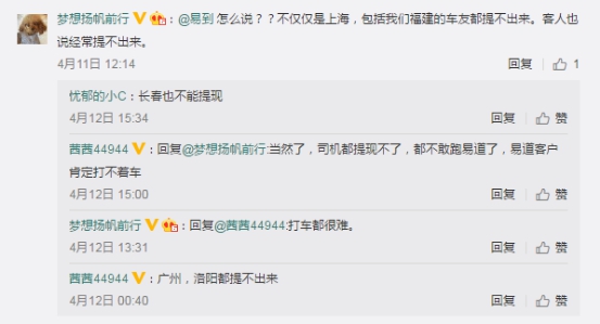 各个城市车主表示无法提现
