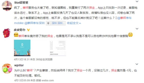 记者作为一名摩拜的早期用户,曾经认为摩拜收取299元押金是合理的。摩拜虽然笨重难骑,但单车造价不菲,即使从“人性本恶”的角度出发,挽回车辆失窃的损失也无可厚非。况且,在日常生活中,租房、住酒店也都要交押金。用户反感的不是收押金这种行为本身,而是“保管”押金的单车运营商的暗箱操作。