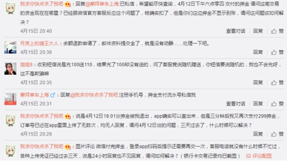 摩拜官方在公开场合,对押金用途向来避而不谈,除了甩锅给招商银行外,就只用一句“专款专用”来搪塞,以至押金去向至今扑朔迷离。摩拜从未尝试信用免押金,299元押金金额向来为全行业最高。此外,摩拜单车自上线以来,服务器故障频出,几乎每月出现一次大面积宕机,退押金难的问题愈发凸显。有业内专家分析指出,摩拜自上一轮融资至今,已经近两个月没有新资本进账,若继续烧钱导致摩拜被拖垮,用户的押金或许就要不回来了。
