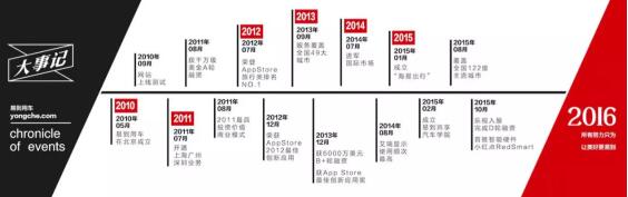 易到大事记显示,在此之前的2010年5月,易到用车在北京成立。同年9月,易到提供北京地区预定用车服务。第二年5月,微博订车开启。7月,北上广深四城联动计划开启。