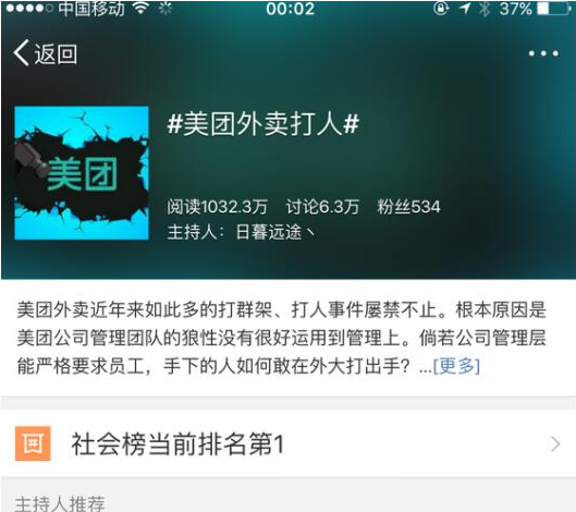 从去年开始 #美团外卖打人# 的微博话题就出现在网友们的视线中。网友们对多起美团外卖员打人事件进行讨论抨击,由于事件的影响力和网友们的热议,话题发布当晚马上占据了社会榜第一名,现在更有愈演愈烈之势。