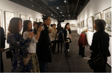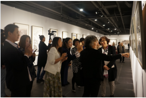开幕式结束后,嘉宾们兴致勃勃地观看了展览,在画作前或合影留念,或仔细揣摩,领会其中的意境。