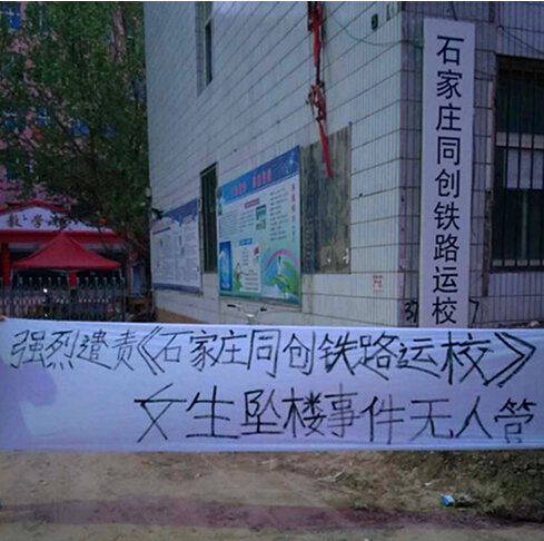 但是,就在李总理讲话前不久,3月26日,河北省石家庄同创铁路运输学校发生一起严重的未成年女生跳楼事件。