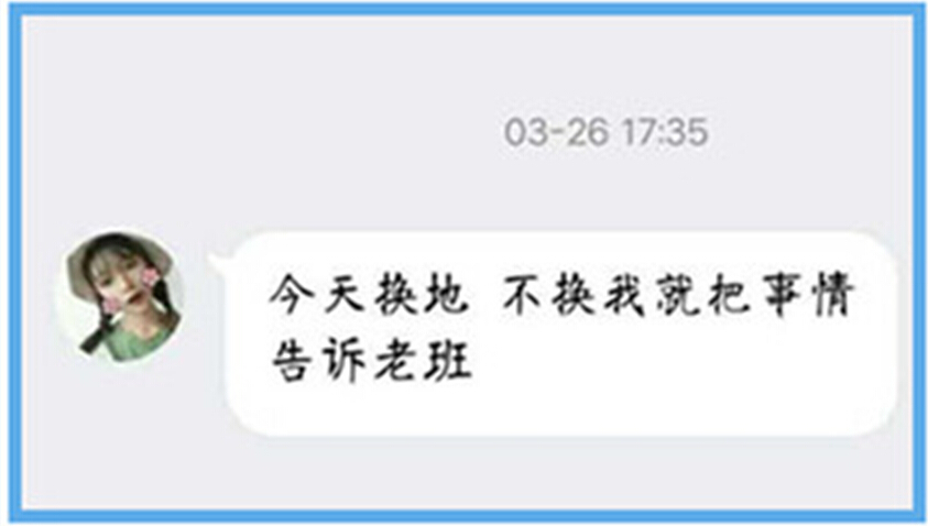 二、任某某逼迫受害人陈某某调整座位,并在QQ中威胁称,会将陈盗窃水卡告知班主任,逼迫陈某某调换座位。