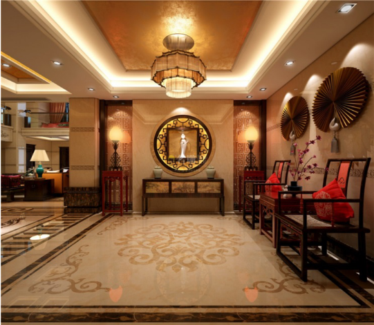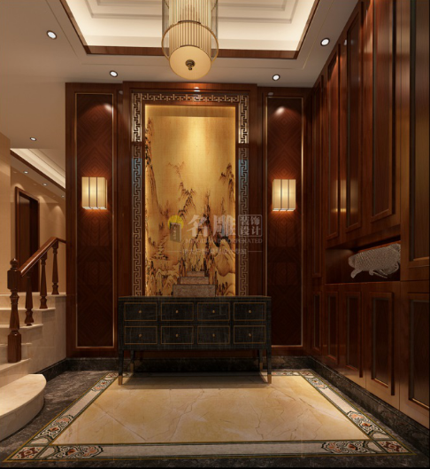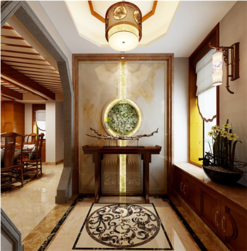此中式玄关格调高雅、端正稳健