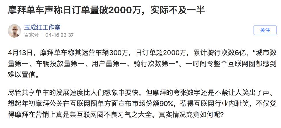 好吧,那就来看看摩拜公关做的到底怎么样?下面我们根据公开报道,试举三个例证: