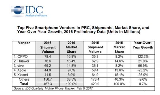 近年来OPPO的销量一直在不断的攀升,此前,由IDC发布的2016-2017年中国智能手机市场监测报告中,OPPO以全年出货量7840万部及18.0%的销售占比领先于国内其他手机品牌。此外,OPPO积极对海外市场扩张的策略以及专利技术的不断投入,让OPPO当之无愧拿下一个又一个的热销产品宝座,获得了全球市场的认可。