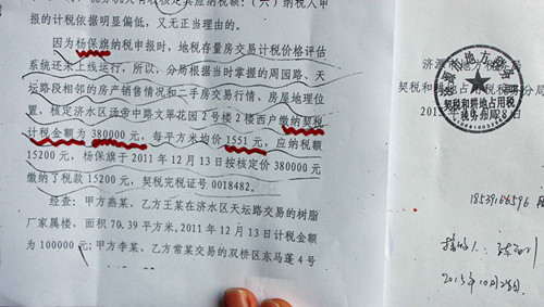 (济源地税局经过调查认定杨保旗所购买的文翠花园小区的房屋缴纳契税计税金额为38万元)