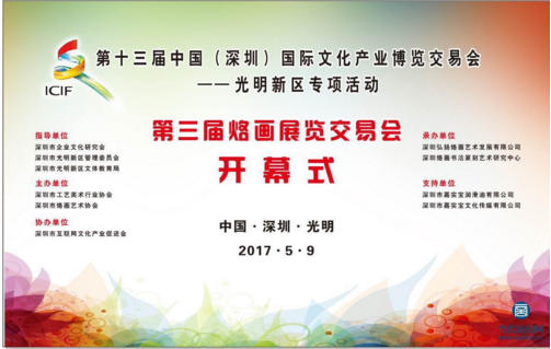【喜讯】5月8日,剧悉:第三届烙画展览交易会组委会,于9日在光明烙画基地盛大开幕!第三届烙画展览交易会是深圳市企业文化研究会、深圳市光明新区管委会、深圳市文体教育局关怀指导下,由深圳市工艺美术行业协会、深圳市烙画艺术协会联合主办。