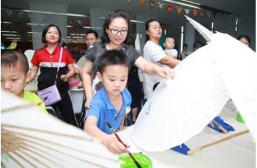 现场还有吴其导师亲自指导孩子们绘制水墨画纸伞,在导师的指导和手把手教授下,孩子们的作品完成得像模像样,颇具韵味。