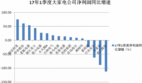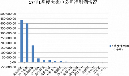 从净利润规模来看,美的集团、格力电器以及青岛海尔三巨头的地位依然无法撼动;第二梯队成员与去年一季度保持不变,依旧是小天鹅A、海信科龙、老板电器、万和电气以及惠而浦;第三梯队成员的净利润情况却出现了分化,其中华帝股份、浙江美大、美菱电器、奥马电器以及澳柯玛均实现了增长,而春兰股份、万家乐以及日出东方则出现了下滑。