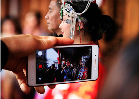 拍摄者独具匠心,用画中画的构图展示了一场特别的畲族婚礼。手机里完整的体现了婚礼的热闹,而新娘的精致面庞和代表性的畲族头饰又在画面里凸显出来。镜头语言简洁利落、重点突出,色彩喜庆。作品里不仅有新人对美好生活的憧憬,还展示了作者扎实的拍摄基本功。