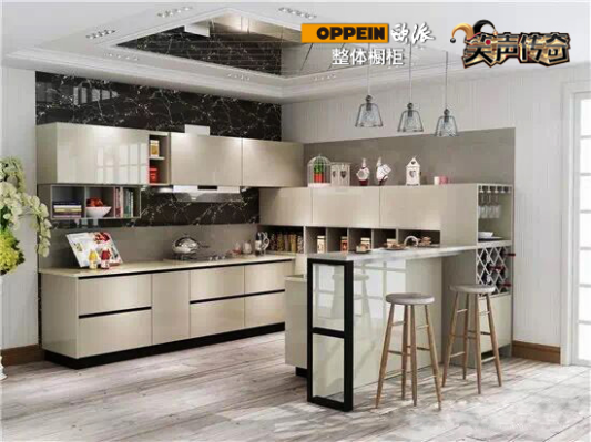 2、时尚又实用的吧台橱柜:一款吧台橱柜就能将餐厅和厨房合并,既省去了饭菜端来端去的麻烦,还可以尽快吃到刚出锅的美味,更重要的是,在你料理美味的时候,好友们还可以守在一旁观赏聊天。聚会料理不再是一个人的事情。