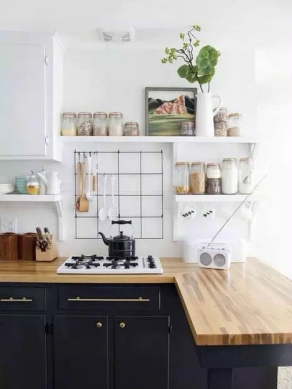 一小盆花,一小顶吊兰,一点绿色就能点缀厨房的温馨。