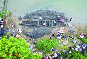 已经15年没有起过龙船的万江滘联社区,选在上周末,用两天的时间,将一条已埋入正丫河涌15年的“老龙”请起。这条松木龙舟造于1983年,2002年端午过后,便一直沉睡涌底,比它更轻便的杉木龙舟从此代替它中流击水。