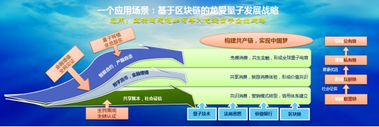 这样做就回到龙爱,我们给龙爱设计了一套模式。龙爱先做共享价值联盟区块链,让所有人在里面形成产品共识,然后发行数字货币鼓励消费者体验。然后通过智能合约,把消费者的体验形成量子电商。然后开放接口,导入其它机构形成互联链,之后龙爱做他的事,凝聚成龙爱私有链,把公共部分释放出去,形成公有链。