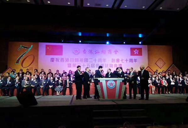 近日,瑞丰德永集团高层出席了在香港会议展览中心举行的香港汕头商会庆祝香港回归祖国20周年、创会70周年暨第35届会董就职典礼。