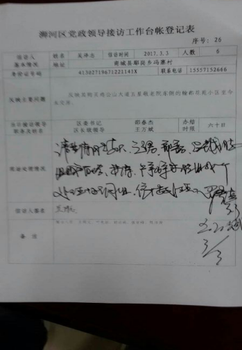 2017年3月3日,信阳市浉河区区委书记邵春杰、区长级领导王万斌在接待翰都花苑业主信访反映“其购买的鸡公山大道五星敬老院东侧的翰都花苑小区至今无交房”问题时批示,要求当地多个职能部门组成一个协调小组,依法处理,60日内办结有关问题。然而,时限已过,业主并未得到任何情况反馈,信阳市浉河区主要领导的重视和批示形同一张废纸。