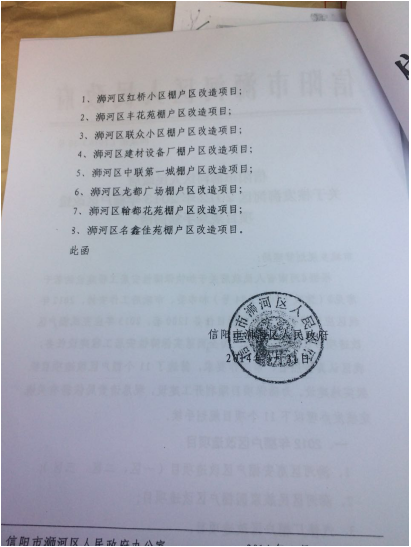 在一份2013年12月13日信阳市浉河区房地产管理中心向区政府呈报的“关于翰都花苑棚户区改造项目的情况说明”中这样表述:“翰都花苑棚户区项目已列为浉河区改造项目,为确保项目按期推进,相关手续正在办理中,同意项目实施单位在先期已经进行地质勘查、规划红线图、选址意见书、规划设计条件、规划平面图、施工图纸设计、施工图纸审核和招投标的前提下,边办理其余手续边建设。”