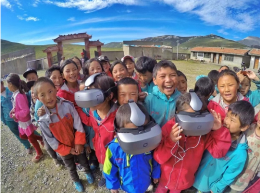 ☞ 山区孩子通过大朋VR一体机看外面的世界。