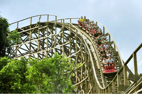 不一样的山,就有不一样的过山车,结合现有山体设计的“木质过山车”最大落差40米,最高时速97公里,飞一般的感觉,不一般的曲线心跳。放声大喊,将疲惫都抛飞~