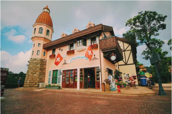 瑞士阿尔卑斯山脉题材的茵特拉根小镇,无论是建筑风格或是随处可闻的山地音乐都让人仿若置身于欧州小镇之中。化身瑞士山民涌进大巡游里一起狂欢,亦或在古老火车站木质的月台拍上复古怀旧的照片;哪怕是坐在廊桥上,晒晒太阳,心情与身体都能一起明媚起来。体验一场不出国门,即可生活在别处的感觉。