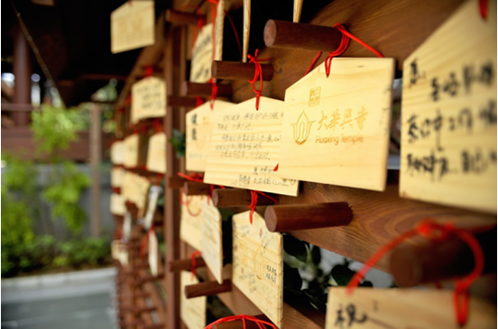 大华兴寺品尝香积斋“活色生香”的精致素食,饭后还可以在许愿墙的木质许愿牌上为亲人朋友亲手书写祝福。