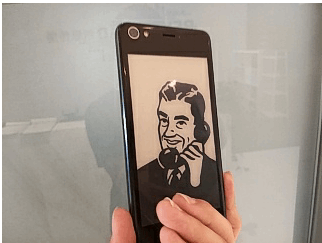 首先是我们最常用的相机,在我们使用炫彩屏取景的时候,背面的水墨屏就会显示一个单眼相机或者一双眼睛,这取决于你是以什么姿势持握手机。