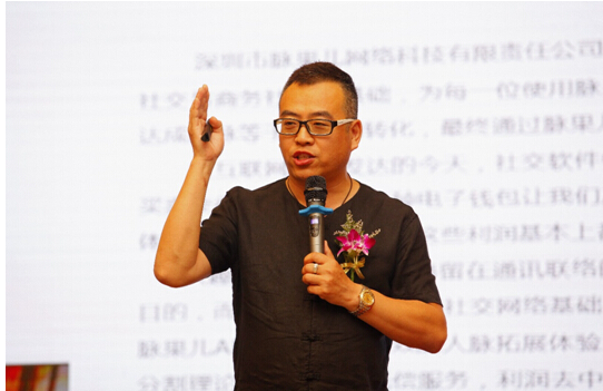 脉果儿陈达陈总担任本次会议的论坛主席,并为大会致辞。在致辞中提到,在“大众创业、万众创新”、“互联网+”已成为全社会共识的今天,新业态的打造、新模式的推出,无疑是获得先发优势的关键。而脉果儿紧扣政策主题,认真贯彻分享经济共享价值理念,是一个集社交、娱乐、消费、电商和金融于一身的综合互联网生态系统,也是一个大众创业万众创新的价值社交平台。在共邀脉友共同聆听脉果儿商业模式之后,上午9时50分陈总宣布本次大会正式开始!
