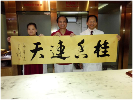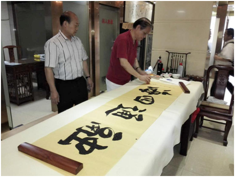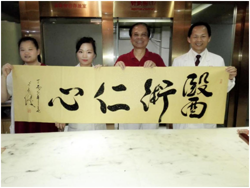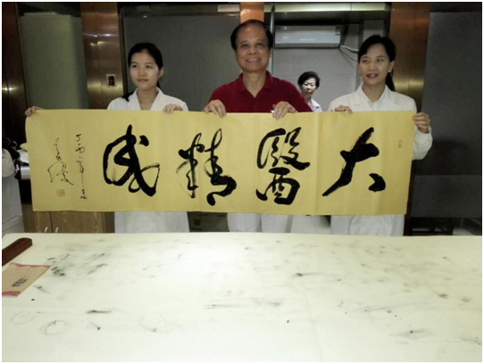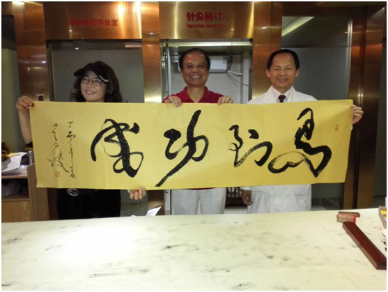 吴友优走进广州易生健中医舘挥写书法颂扬国医传播正能量