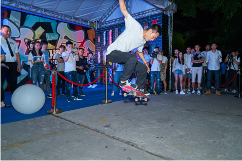 除此之外,场外的互动也精彩连连。帅气的滑板秀和搞怪滑稽的舞蹈,另观众捧腹连连,养眼的模特也另观众大饱眼福!