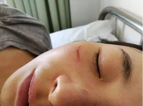 被打的肖医生此时住在曲靖市麒麟区人民医院住院部。她躺在病床上,眼睛、嘴巴和面部有些浮肿,脸上有多处划痕。