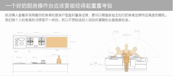 据说橱柜台面的高度是有一套通用标准的,不过对自身挑剔的欧派橱柜怎么会轻信这样的说法呢?团队用23年时间不断试验,终于发现原来打造不累厨房的秘诀并不只在于高度上。每个人身高和习惯的不同,决定了适合我们的台面高度并不相同,因而欧派橱柜的懒人备餐系统会根据你的身高、厨房面积量身定做,用人体工程学的科学理论支撑起你的梦想厨房。怎么样,这样的专业团队是否让你安心很多?