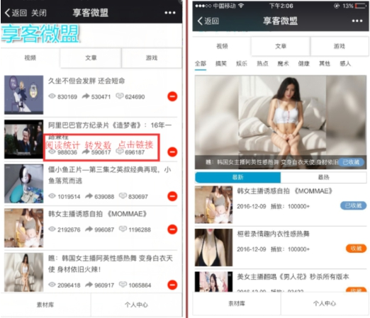 微信公众号要做好有准备的推广是非常重要的,只有不断创新推广才有可能获得成功。视频推广,是享客微盟分享平台推广公众号的常用手段。通过制作视频,把一些有趣、搞笑的小视频上传到优酷、土豆、爱奇艺等这些视频网站上,以优质视频内容搏取更多的人关注和转发。比如网红papi酱和同道大叔,都有推广自己制作的短视频,也会在视频结尾中推广自己的微信号并贴上二维码图片。