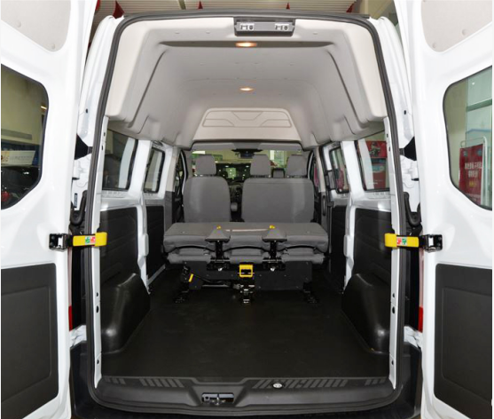福特新全顺采用大格局车身设计,有短轴低顶车型、中轴中顶车型,其中,短轴低顶车型的长宽高分别为:4974毫米/2032毫米/2061毫米,轴距2933毫米,实现5.74立方米的装载空间;中轴中顶车型的长宽高分别为5341毫米/2032毫米/2407毫米,轴距3300毫米,实现8.22立方米的超大装载空间。无论是短轴低顶车型还是中轴中顶车型,在装载空间方面都有优越表现。特别是对开式尾门设计,配合60厘米离地便利装载设计,装卸货物更加轻便,即使是装卸大件物品也不再烦恼。
