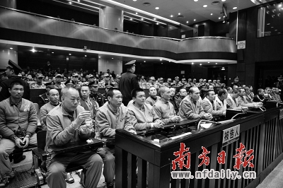 昨日上午,记者在广州市中级人民法院第一法庭看到,此案卷宗厚度惊人,有4名公诉人出庭支持公诉,38名代理人为一众被告出庭辩护。另有10余家媒体记者,部分广州市人大代表和民众旁听了案件审理。